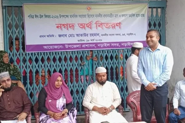 পবিত্র ঈদুল ফিতর উপলক্ষে নড়াইলের গরিব, অসহায় ও দুস্থদের মাঝে প্রধানমন্ত্রীর ত্রাণ ও কল্যাণ তহবিল হতে নগদ অর্থ ও বস্ত্র বিতরণ করা হয়েছে। বুধবার (১৮ মার্চ) সকালে সদর উপজেলা প্রশাসনের আয়োজনে মাইজপাড়া কলেজ মাঠে এক অনুষ্ঠানের মাধ্যমে এই মানবিক সহায়তা প্রদান করা হয়। অনুষ্ঠানে প্রধান অতিথি হিসেবে উপস্থিত থেকে উপকারভোগীদের হাতে নগদ অর্থ ও শাড়ি…