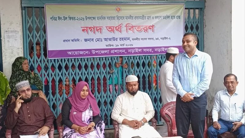 নড়াইলে প্রধানমন্ত্রীর ত্রাণ তহবিলের নগদ অর্থ ও শাড়ি বিতরণ করলেন এমপি আতাউর রহমান