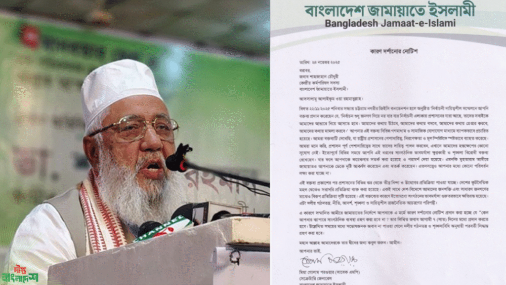 বিতর্কিত মন্তব্যে জামায়াত নেতা শাহজাহান চৌধুরীকে শোকজ নোটিশ