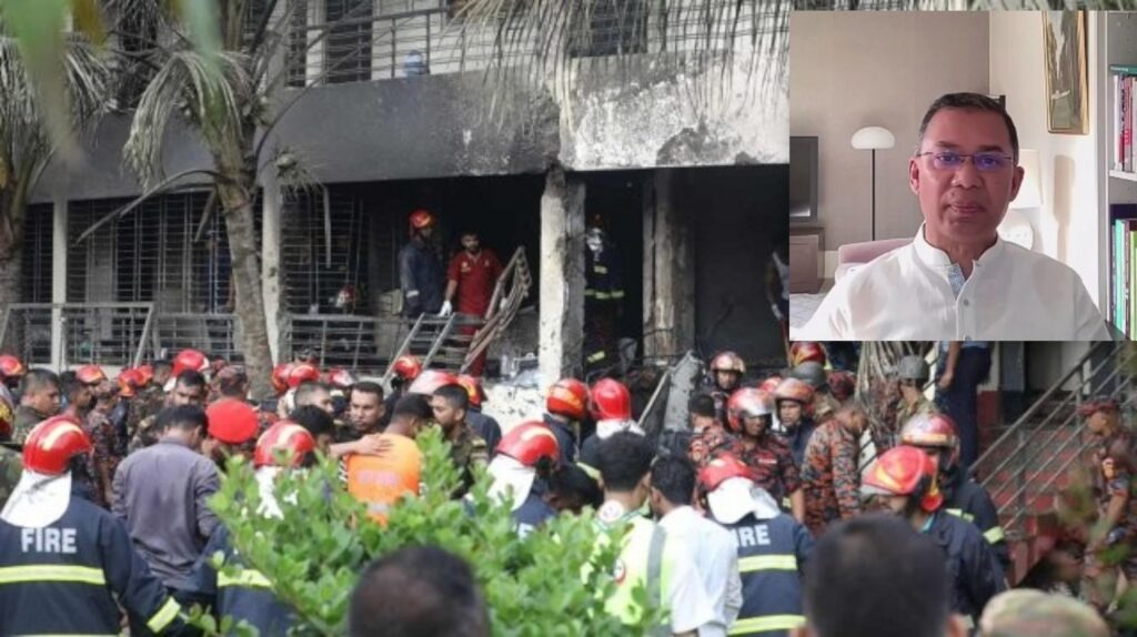 এক ফেসবুক পোস্টে তারেক রহমান লিখেছেন, ‘মাইলস্টোন কলেজে ঘটে যাওয়া মর্মান্তিক বিমান দুর্ঘটনায় আমরা শোকাহত। একটি শিক্ষাপ্রতিষ্ঠান—যেখানে একটি শিশু, কিশোর কিংবা তরুণ তার শিক্ষা, বিকাশ ও নিরাপত্তা নিয়ে আশাবাদী হয়ে উঠে, সেই পরিবেশে এমন ভয়াবহতা কখনো কাম্য নয়। এ ঘটনায় নিহত শিক্ষার্থীদের আত্মার মাগফিরাত কামনা করছি এবং আহতদের দ্রুত সুস্থতা কামনা করছি।’