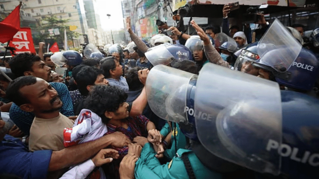 বন্দর চুক্তির প্রতিবাদে যমুনা ঘেরাও কর্মসূচিতে পুলিশের বাধা; আহত বাম জোটের ১২ নেতাকর্মী