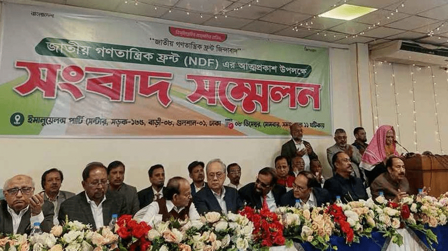 জাতীয় পার্টির (জাপা) সাবেক দুই প্রভাবশালী নেতা ব্যারিস্টার আনিসুল ইসলাম মাহমুদ এবং আনোয়ার হোসেন মঞ্জুর (জেপি) নেতৃত্বে নতুন একটি রাজনৈতিক জোট আত্মপ্রকাশ করেছে। এই জোটটি মোট ২০টি দল নিয়ে গঠিত হয়েছে এবং এর নামকরণ করা হয়েছে জাতীয় গণতান্ত্রিক ফ্রন্ট (এনডিএফ)।