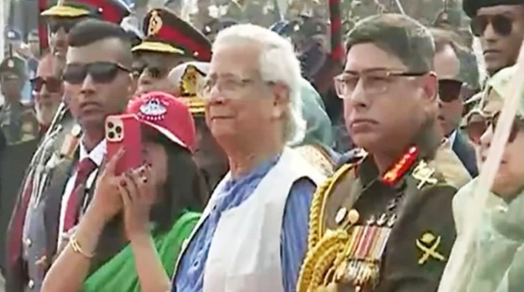 মহান বিজয় দিবস উপলক্ষে সশস্ত্র বাহিনীর বিশেষ আয়োজনে অংশ নিলেন বাংলাদেশের প্রধান উপদেষ্টা অধ্যাপক ড. মুহাম্মদ ইউনূস। মঙ্গলবার (১৬ ডিসেম্বর) এই বিশেষ দিনটি উদযাপনে রাজধানীর তেজগাঁওয়ে জাতীয় প্যারেড স্কয়ারে সশস্ত্র বাহিনীর তত্ত্বাবধানে আয়োজিত অনুষ্ঠানে তিনি উপস্থিত ছিলেন।