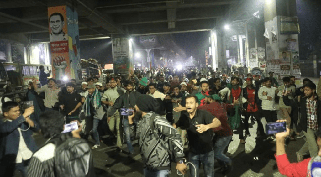 ইনকিলাব মঞ্চের মুখপাত্র শরিফ ওসমান হাদির মৃত্যুর সংবাদে রাজধানীর শাহবাগে বিক্ষোভ ও প্রতিবাদ সমাবেশ করেছেন তাঁর সমর্থকরা। বৃহস্পতিবার রাতে সিঙ্গাপুরে চিকিৎসাধীন অবস্থায় তাঁর মৃত্যুর খবর পাওয়ার পরপরই বিক্ষুব্ধ সমর্থকরা শাহবাগ এলাকায় জড়ো হতে থাকেন।