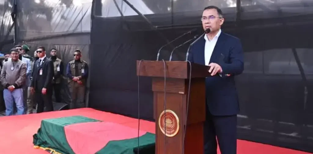 জানাজা শুরুর আগে উপস্থিত মুসল্লিদের উদ্দেশে বক্তব্য দেন বেগম জিয়ার বড় ছেলে ও বিএনপির ভারপ্রাপ্ত চেয়ারম্যান তারেক রহমান। গতকাল থেকেই তাকে অত্যন্ত বেদনাতুর অবস্থায় দেখা গেলেও আজ জানাজার আগে তার অভিব্যক্তি ছিল আরও ভারি ও আবেগঘন।