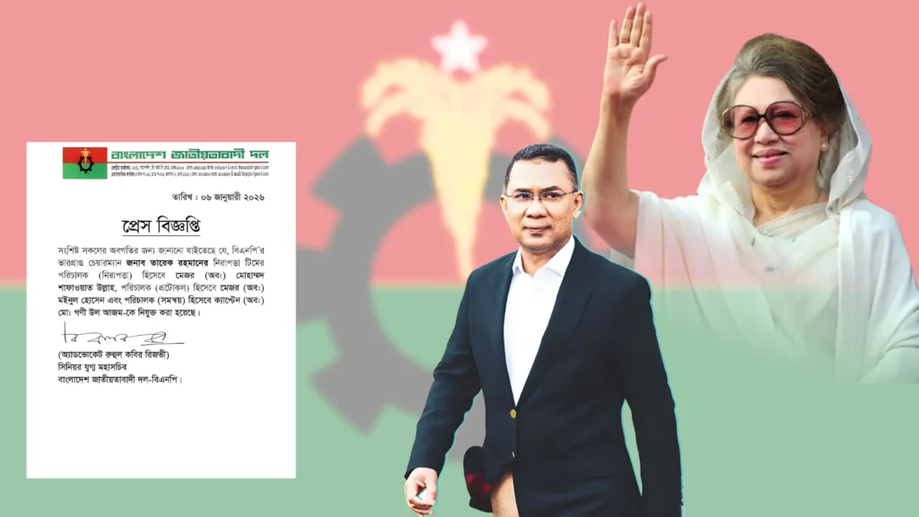 বাংলাদেশ জাতীয়তাবাদী দলের (বিএনপি) ভারপ্রাপ্ত চেয়ারম্যান তারেক রহমানের দাপ্তরিক ও ব্যক্তিগত নিরাপত্তা নিশ্চিত করতে তিন সাবেক সামরিক কর্মকর্তাকে বিশেষ দায়িত্ব দিয়ে নিয়োগ দেওয়া হয়েছে। দলটির পক্ষ থেকে এক আনুষ্ঠানিক সংবাদ বিজ্ঞপ্তির মাধ্যমে এই নতুন নিয়োগের বিষয়টি জানানো হয়।