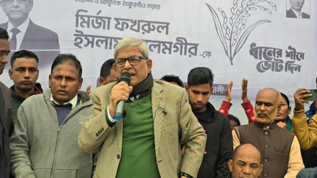 বিএনপি মহাসচিব ও ঠাকুরগাঁও-১ আসনের ধানের শীষের প্রার্থী মির্জা ফখরুল ইসলাম আলমগীর বলেছেন, বিএনপি ক্ষমতায় গেলে সাধারণ মানুষ ও কৃষকদের কল্যাণে বড় ধরনের আর্থিক সুবিধা প্রদান করা হবে। শনিবার (৩১ জানুয়ারি) ঠাকুরগাঁও সদর উপজেলার আকচা ইউনিয়নে এক নির্বাচনি পথসভায় বক্তব্য দেওয়ার সময় তিনি এই প্রতিশ্রুতি দেন।