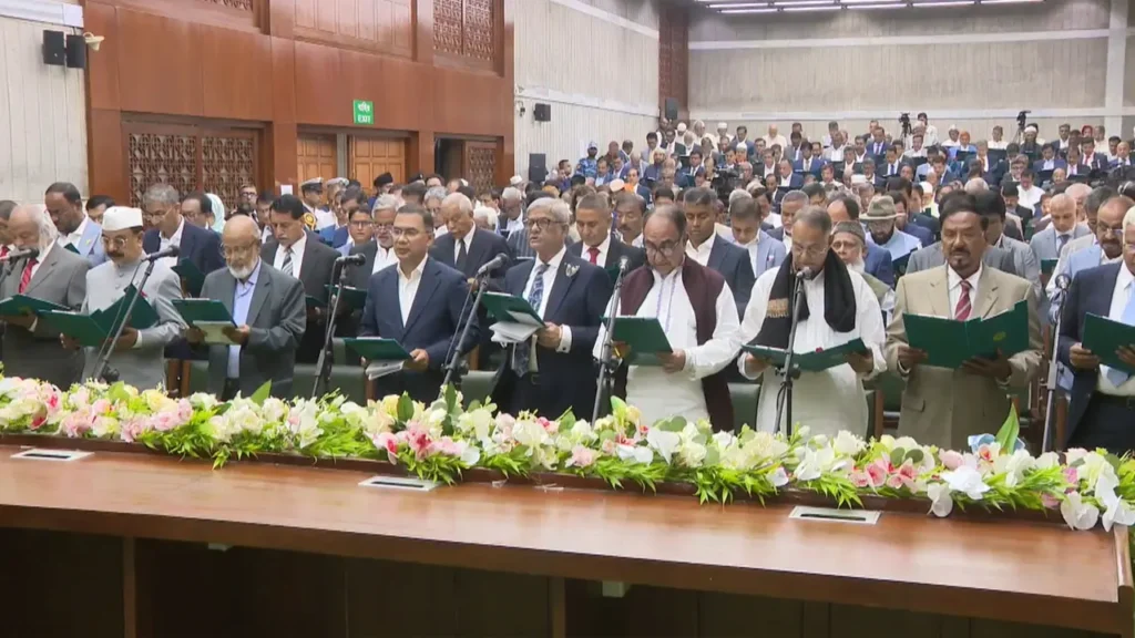 শপথগ্রহণ অনুষ্ঠানে দেশি ও বিদেশি অতিথিরা উপস্থিত ছিলেন। অনুষ্ঠানের শুরুতে নতুন আইনপ্রণেতাদের উদ্দেশ্যে বক্তব্য রাখেন বিএনপির স্থায়ী কমিটির সদস্য সালাহউদ্দিন আহমদ। এ সময় তিনি সংবিধান সংস্কার পরিষদের বিষয়ে দলীয় সিদ্ধান্তের কথা আনুষ্ঠানিকভাবে অবহিত করেন। বক্তব্য শেষে সংসদ সদস্যরা নিজ নিজ শপথপত্রে সই করেন।